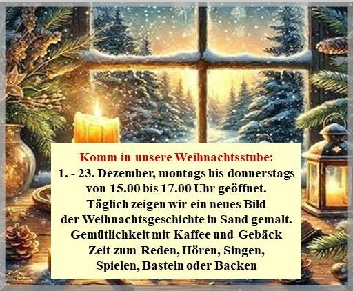 30.| | So | 14:30 | 1. Advent, Gottesdienst und Adventskaffee |